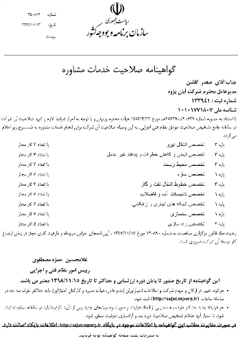 ما براساس تجارب و خدمات کارشناسی انجام یافته موفق به دریافت صلاحیت های انجام خدمات مشاوره زیر گشته ایم: