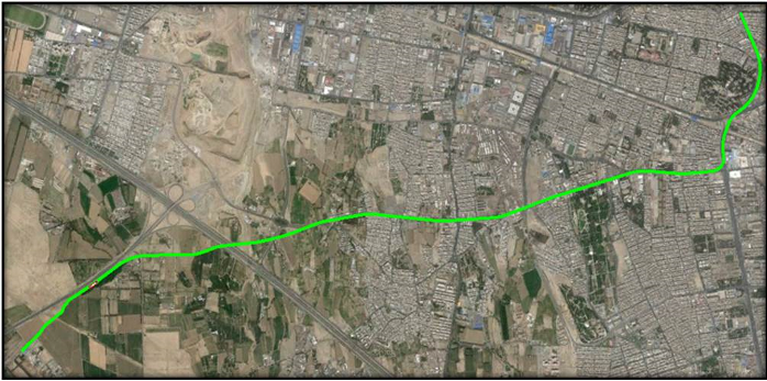 مسير تونل انتقال فاضلاب غرب تهران از تقاطع بزرگراه آيتالله سعيدي با خيابان سي متري جي آغاز و تا بازار مبل يافتآباد امتداد مييابد و در ادامه از طريق بلوار معلم تا ضلع شمالي بزرگراه آزادگان پيش ميرود و در حاشيه ضلع شمالي بزرگراه امتداد يافته و از رودخانه کن عبور ميکند. اين تونل با عبور از عرض بزرگراه آزادگان در نهايت در حاشيه ضلع جنوب شرقي آزادراه ساوه تا محل تصفيهخانه جنوب غربي تهران (فيروزبهرام) امتداد مييابد. طول اين تونل بر اساس آخرين تدقيقهاي انجام شده معادل 10826 متر مي باشد كه در بخش حفاري مكانيزه قطر داخلي آن معادل 0/3 متر است.